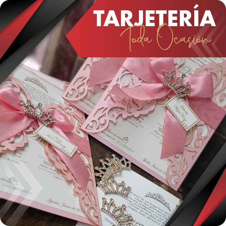 somos especialistas en tarjetería fina para toda ocasión, creando diseños únicos que reflejan la esencia de cada momento especial: matrimonios, bautizos, grados, primeras comuniones y más. Combinamos arte y tecnología para ofrecer acabados exclusivos como corte láser, repujado y estampado en pan de oro, logrando piezas sofisticadas, elegantes y llenas de estilo. Cada detalle es cuidadosamente elaborado para hacer de tu celebración un recuerdo inolvidable.